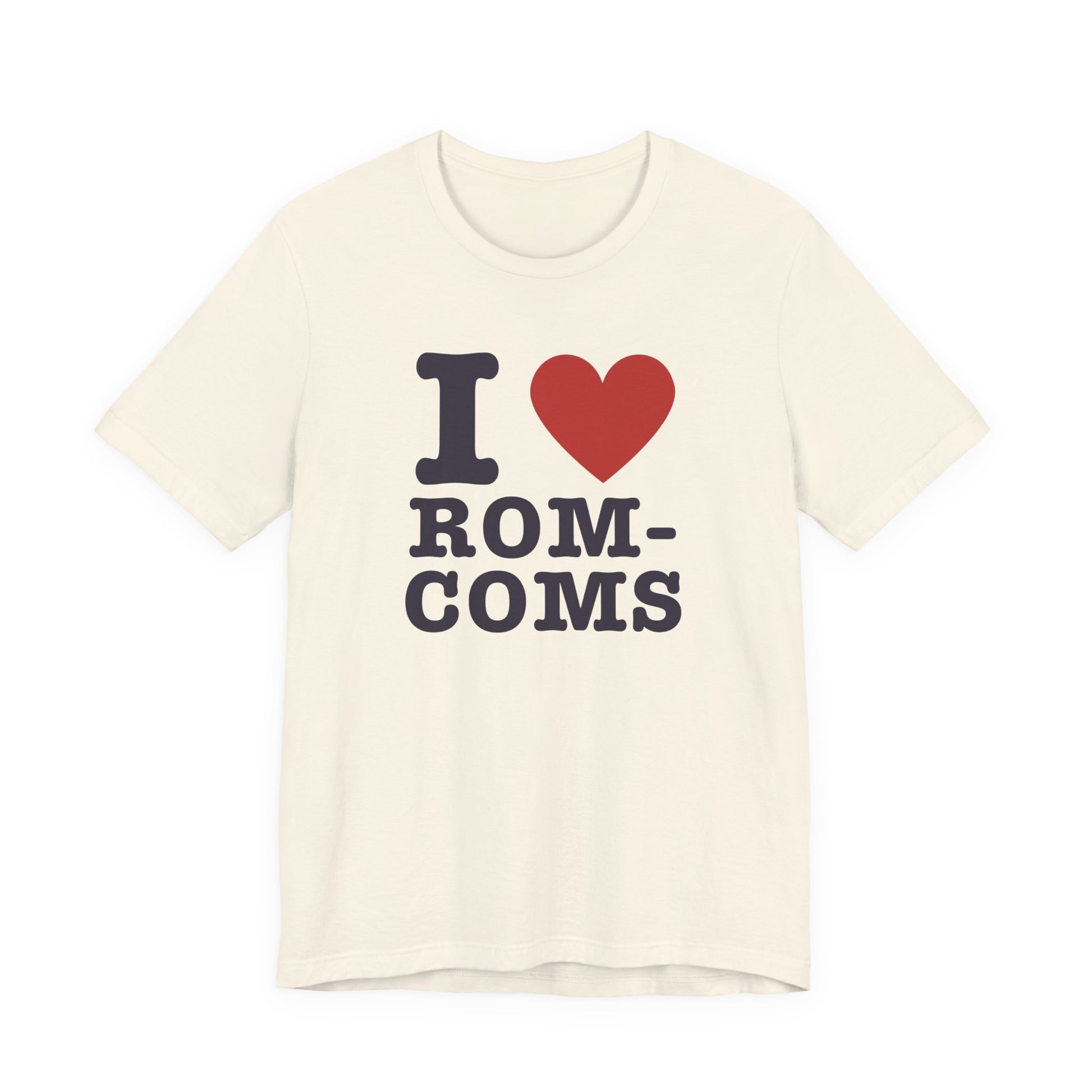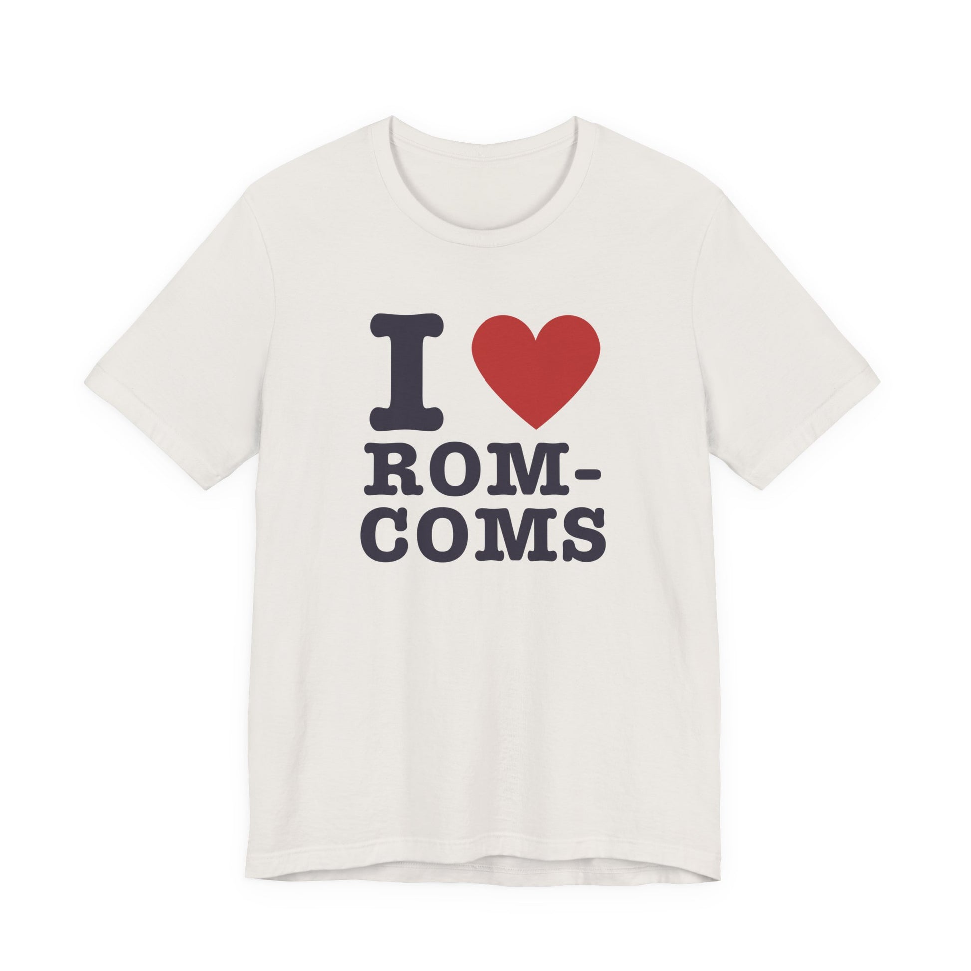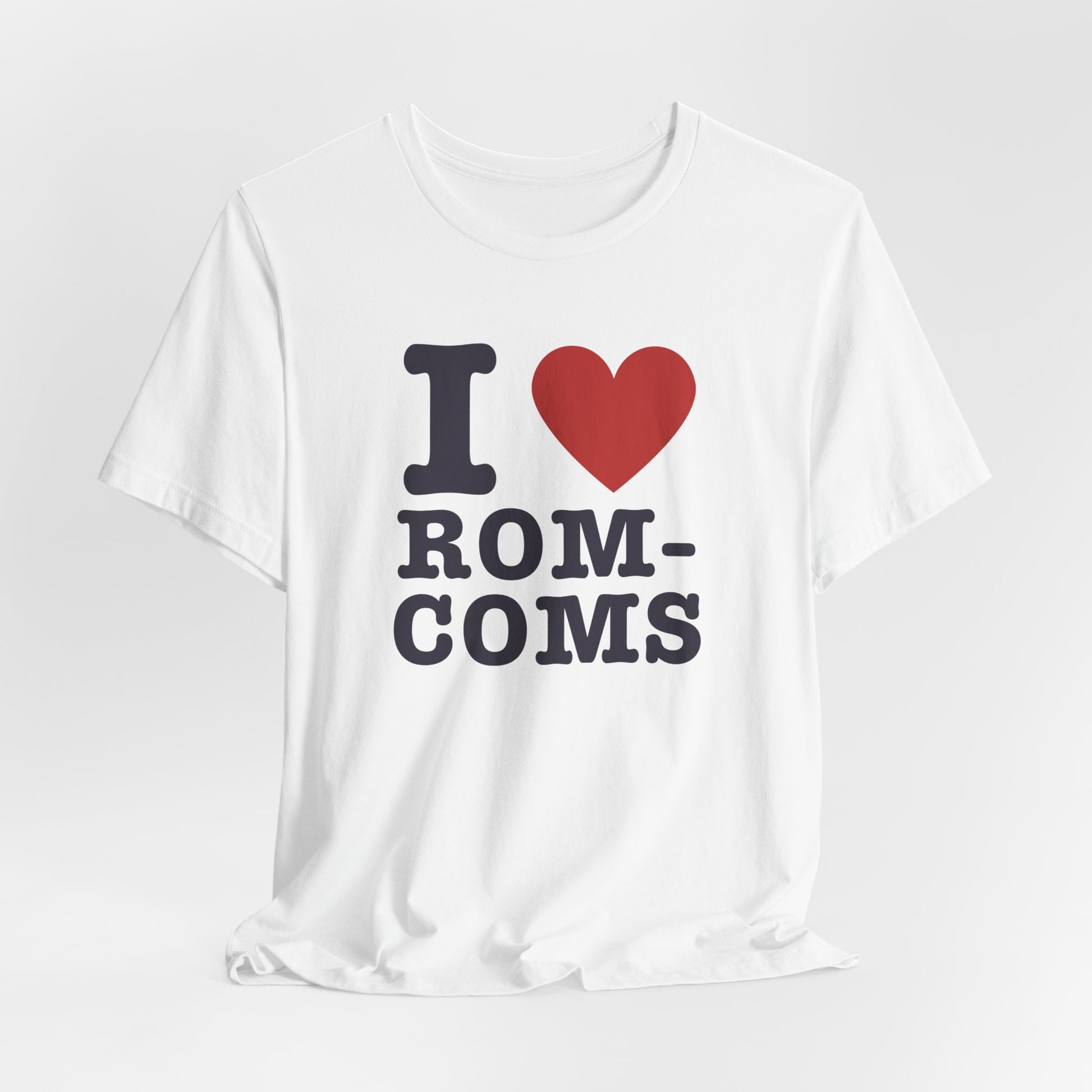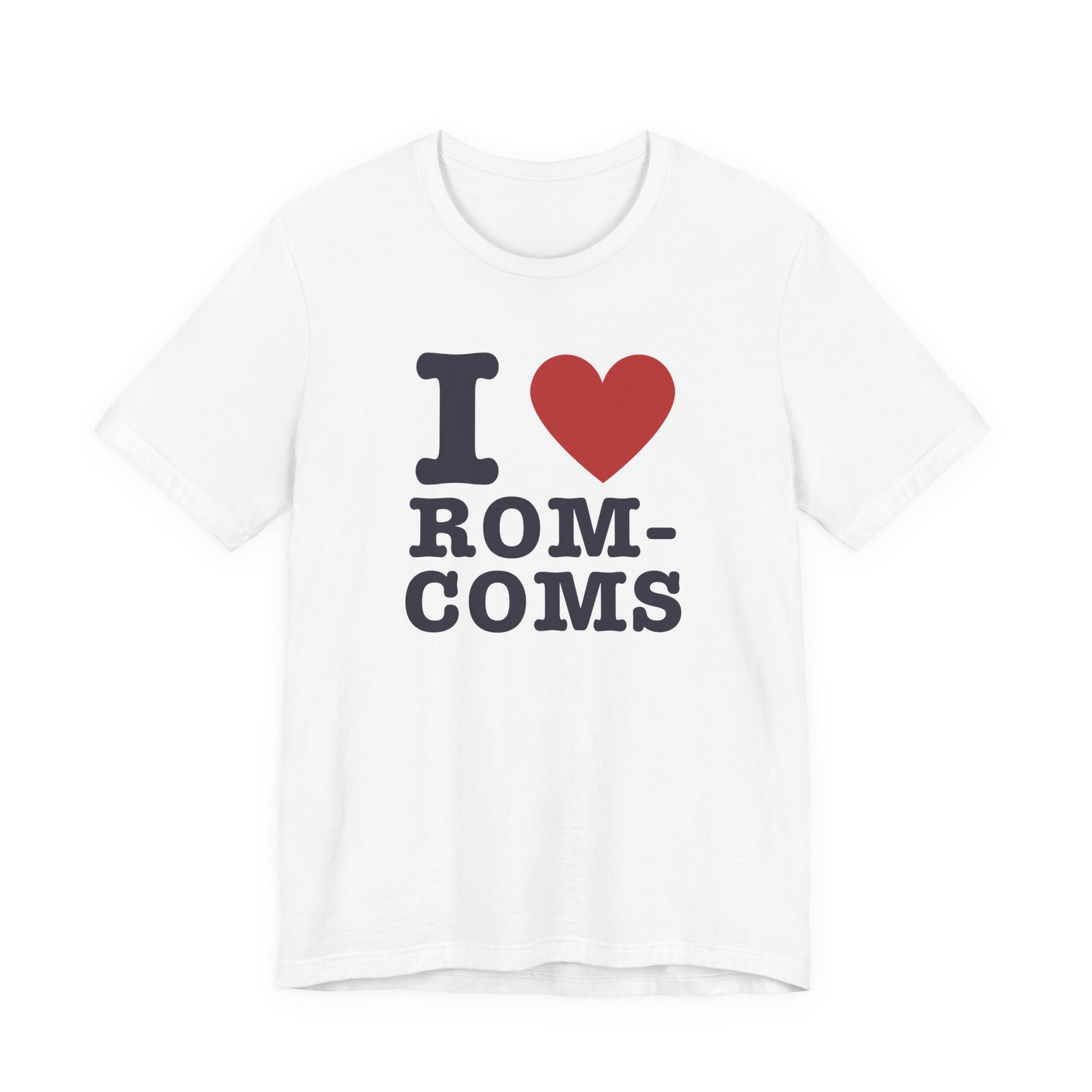 cute movie quote shirt, romantic comedies tee, unisex graphic tee for film lovers, i heart rom coms cotton t-shirt, film inspired valentine's gift, rom com girl aesthetic fashion